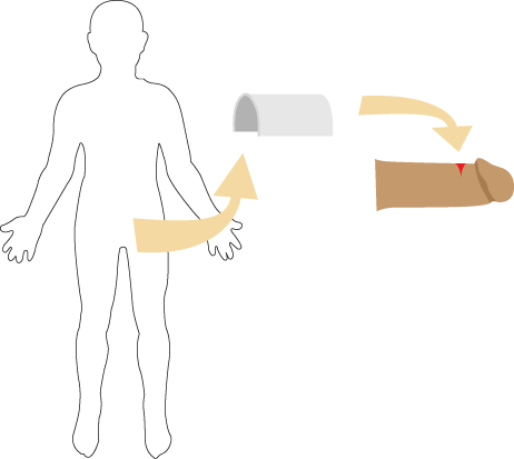 음경은 팽창과 이완을 수시로 하는 기관이므로 열린 원(개구) 형태로 넣어주며 닫친 원(폐구)형태로 이식하지 않습니다. 주로 포경수술 절개 부위 또는 음경뿌리 쪽을 이용하여 피부를 최소 절개하여 이식하며 진피는 일정 기간이 경과하면 신경, 혈관이 자라나면서 생착이 이루어집니다. 처음 이식된 진피는 약간의 이물감을 줄 수 있지만 생착이 이루어지면 자가 신체조직과 유사하게 변화되어 자연스럽게 됩니다.